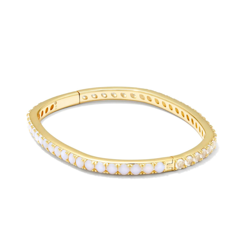 Chandler Gold Bangle Bracelet in White Opalite Mix