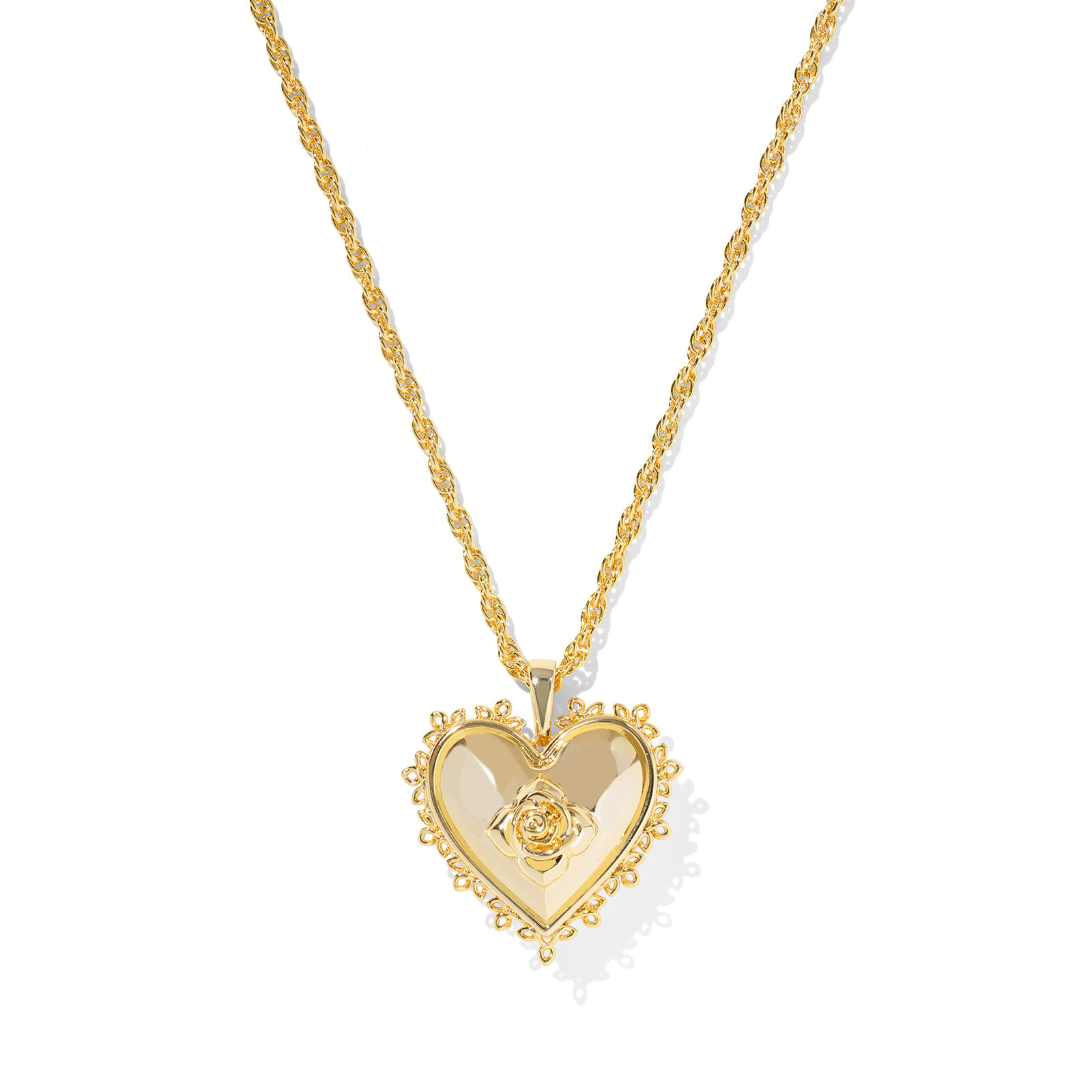 Get the ultimate vintage look with the Mallory Rose Locket Short Pendant Necklace in Gold. Featuring a rose silhouette inspired by our signature medallion logo inside of a heart surrounded with lace, this piece is perfect for a sophisticated look or as an elegant touch for an everyday outfit—making it so ready to be your new favorite.