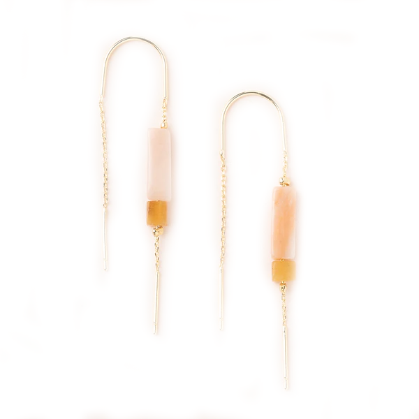 Rectangle Stone Earring – Rose Quartz/Amber/Gold