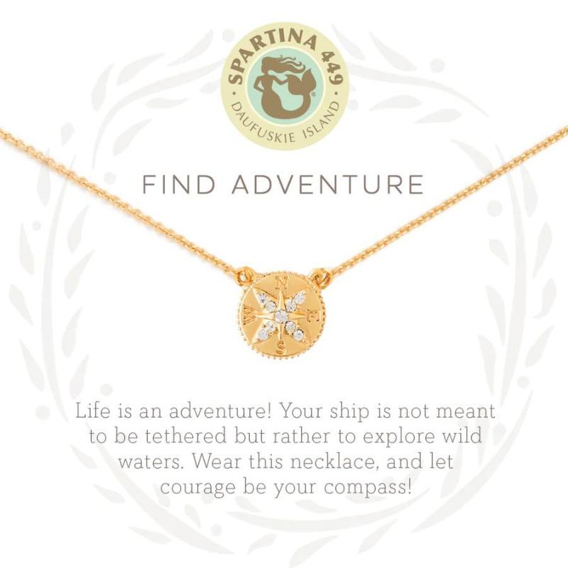 Wear our Adventure Necklace as a reminder to explore the wild waters. Featuring a compass charm, this special piece comes packaged inside a beautiful box with the message: “Life is an adventure! Your ship is not meant to be tethered but rather to explore wild waters. Wear this necklace, and let courage be your compass!”