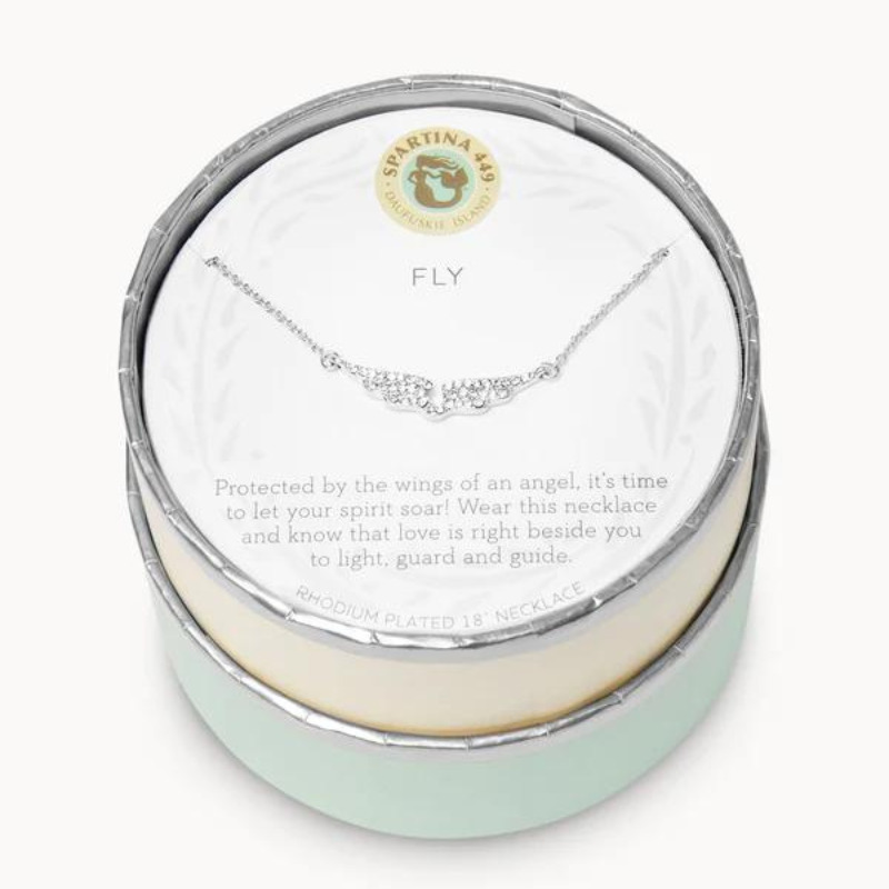 Wear our Fly Necklace as a reminder to soar. Featuring a wings charm, this special piece comes packaged inside a beautiful box with the message: “Protected by the wings of an angel, It’s time to let your spirit soar! Wear this necklace and know that love is right beside you to light, guard and guide.”