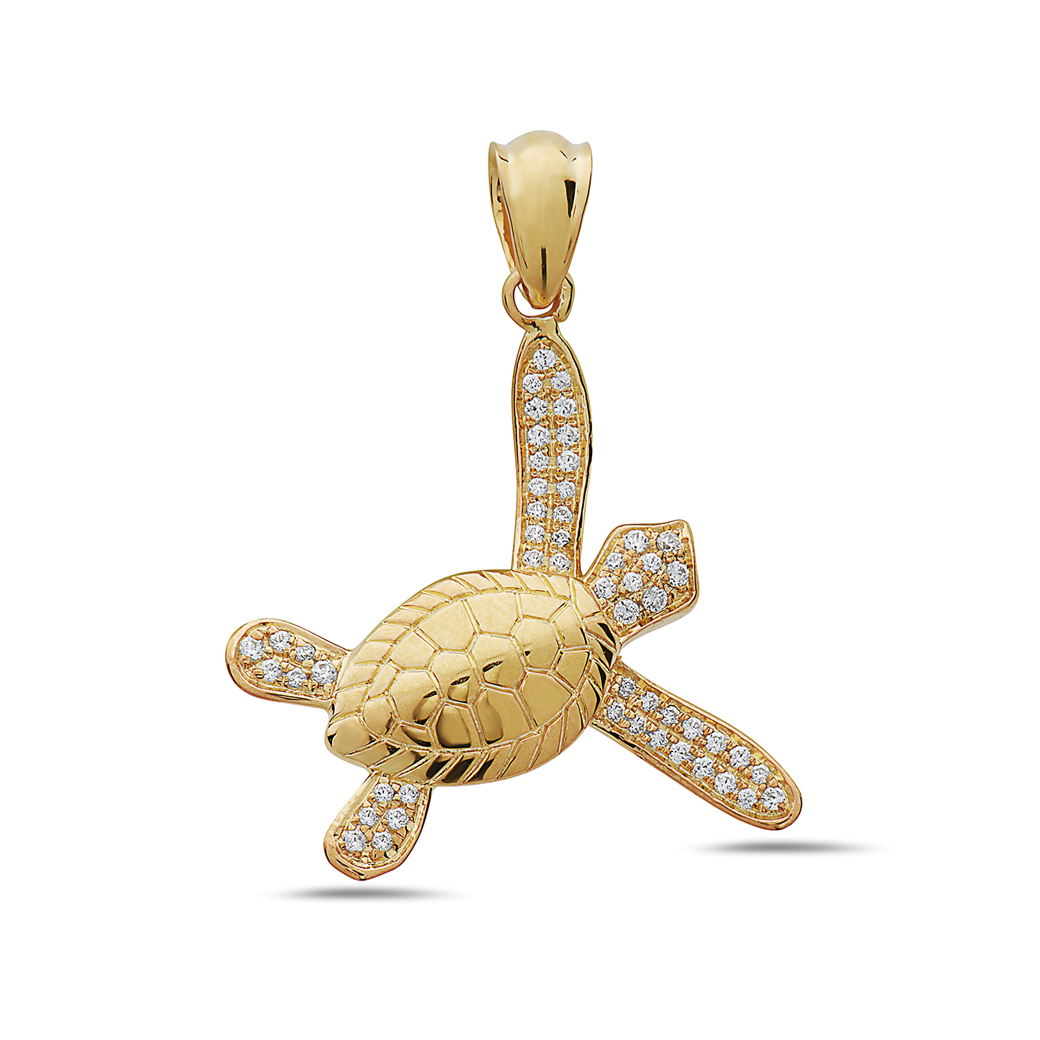 Sea Turtle Yellow Gold Pendant with Diamonds
