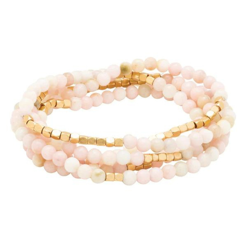 Tap into the energies of the earth.  Semi-precious gemstones adorn the wrist & neckline. Effortlessly converts from bracelet to necklace.  Can be wrapped 4-5 times as a bracelet and 1-2 times as a necklace.