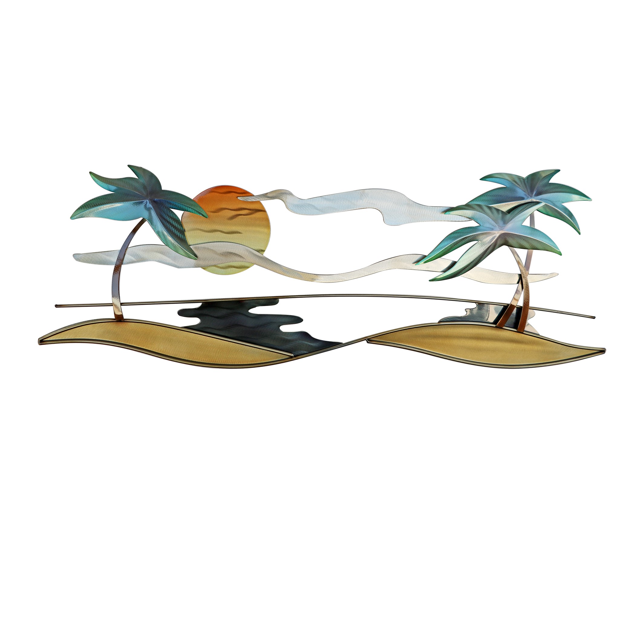 Tropical beach metal wall decor. Metal hangers are on the back for easy display. Colors will vary depending on your light source. Made in Bali, Indonesia. Designed by Joanne Ferrara